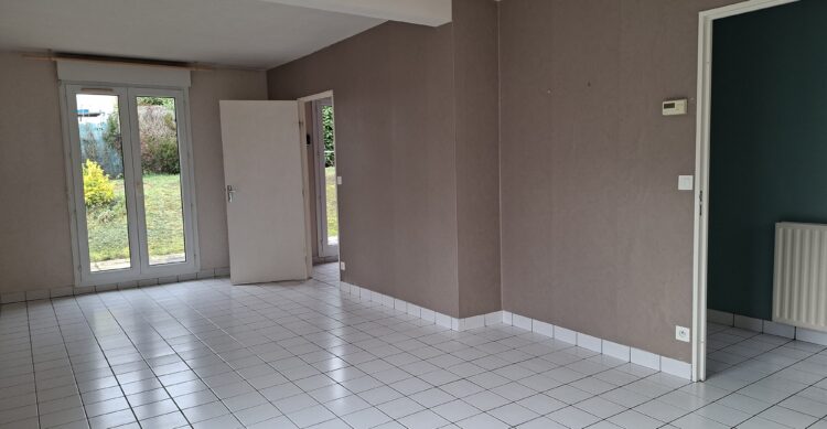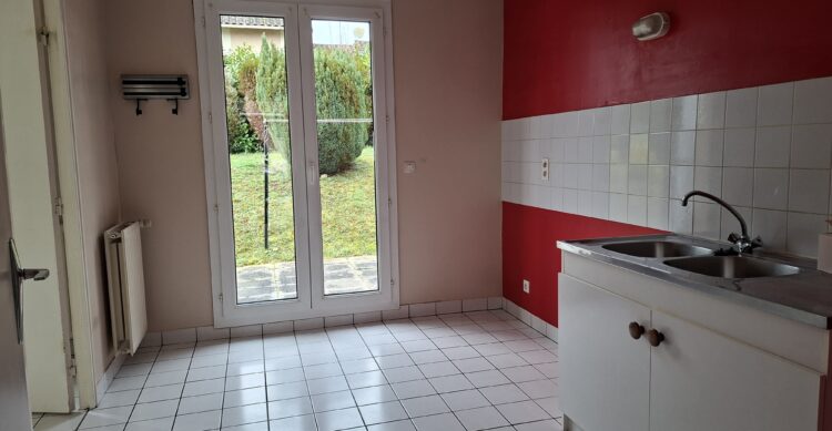 Maison mitoyenne d’un coté à étage comprenant une entrée, un séjour salle manger, une cuisine, 1 WC. 2 chambres dressing, SDB à l’étage. Garage et terrain de 300 m²envrion