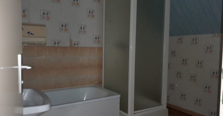 Maison mitoyenne à étage comprenant : une entrée, un séjour / salle manger, une cuisine, un WC.