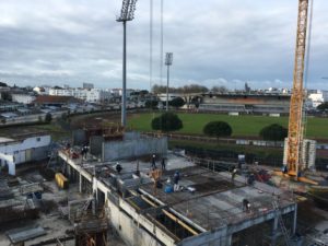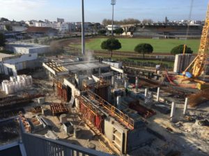 Le rez-de-chaussée du bâtiment C de la Résidence Les Explorateurs est en cours d’élévation. Les murs, qui soutiendront le bâtiment, se créent. Ce rez-de-chaussée correspond au parking de la résidence, il abritera 20 places de stationnement ainsi qu’une cage d’escalier et un local poubelles.