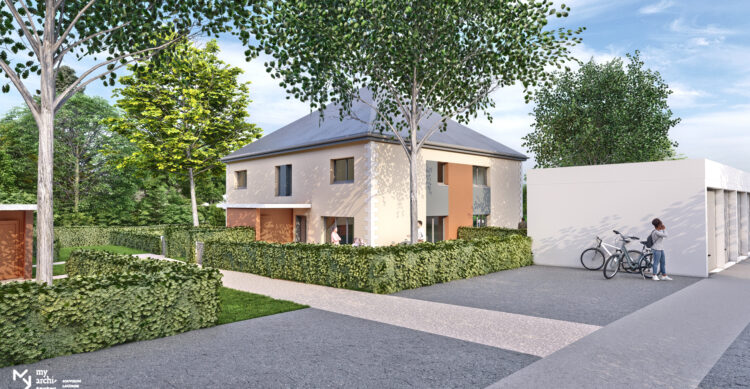 Ussac, proche du Stade et des commerces, appartement neuf T2 de 48m2 comprenant cuisine ouverte sur salon séjour, 1 chambre avec placard, 1 salle d’eau, balcon ou jardinet suivant étage.