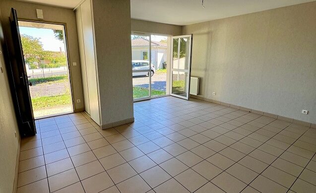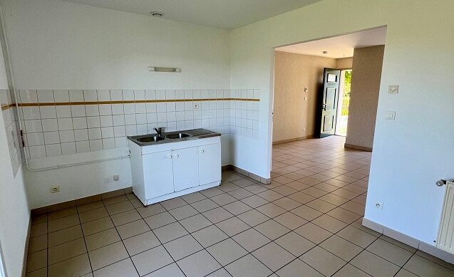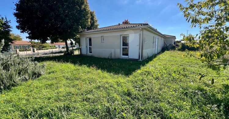 Charmante maison de plain-pied comprenant : une entrée, un séjour lumineux avec cuisine ouverte, un cellier attenant avec accès direct au garage et au jardin.